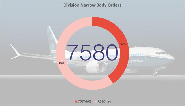 El Boeing 737MAX se puso en marcha casi 300 días después de que el Airbus A320neo, que dio el A320neo una ventaja. En los años posteriores, el A320neo continuó vendiendo más que el Boeing 737MAX. Es probable que (una combinación de) mayores descuentos, opciones de motor, un concepto más moderno y una mejor aeronaves para operar en el segmento de MoM son clave para el Airbus A320neo vendiendo más que el Boeing 737MAX.Actualmente la división entre el A320neo y 737MAX es más o menos 60-40.