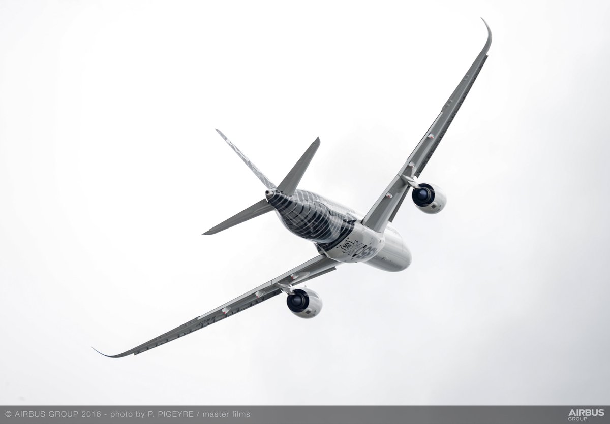 El nuevo integrante de la familia Airbus, el A350 también tuvo protagonismo en la feria británica. Con unas demostraciones aéreas excelentes, hizo recordar o «igualar» a las destrezas desplegadas en la exhibición del Boeing 787-9.