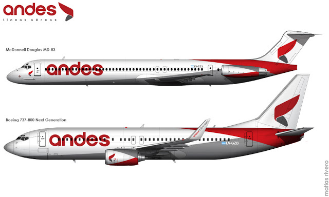 Andes Lineas Aéreas ha anunciado un cambio de imagen corporativa sumados a la ampliación de sus rutas de cabotajes en Argentina. El diseño presenta un atractivo colorido de rojo y gris que se concentran al final del fuselaje. El rediseño de su logotipo «Andes» es más suave y el cambio de su isotipo formarían parte de un cambio estructural para una compañía aérea que ha sabido sobrevivir los embates políticos y restrictivos en el ámbito aeronáutico.