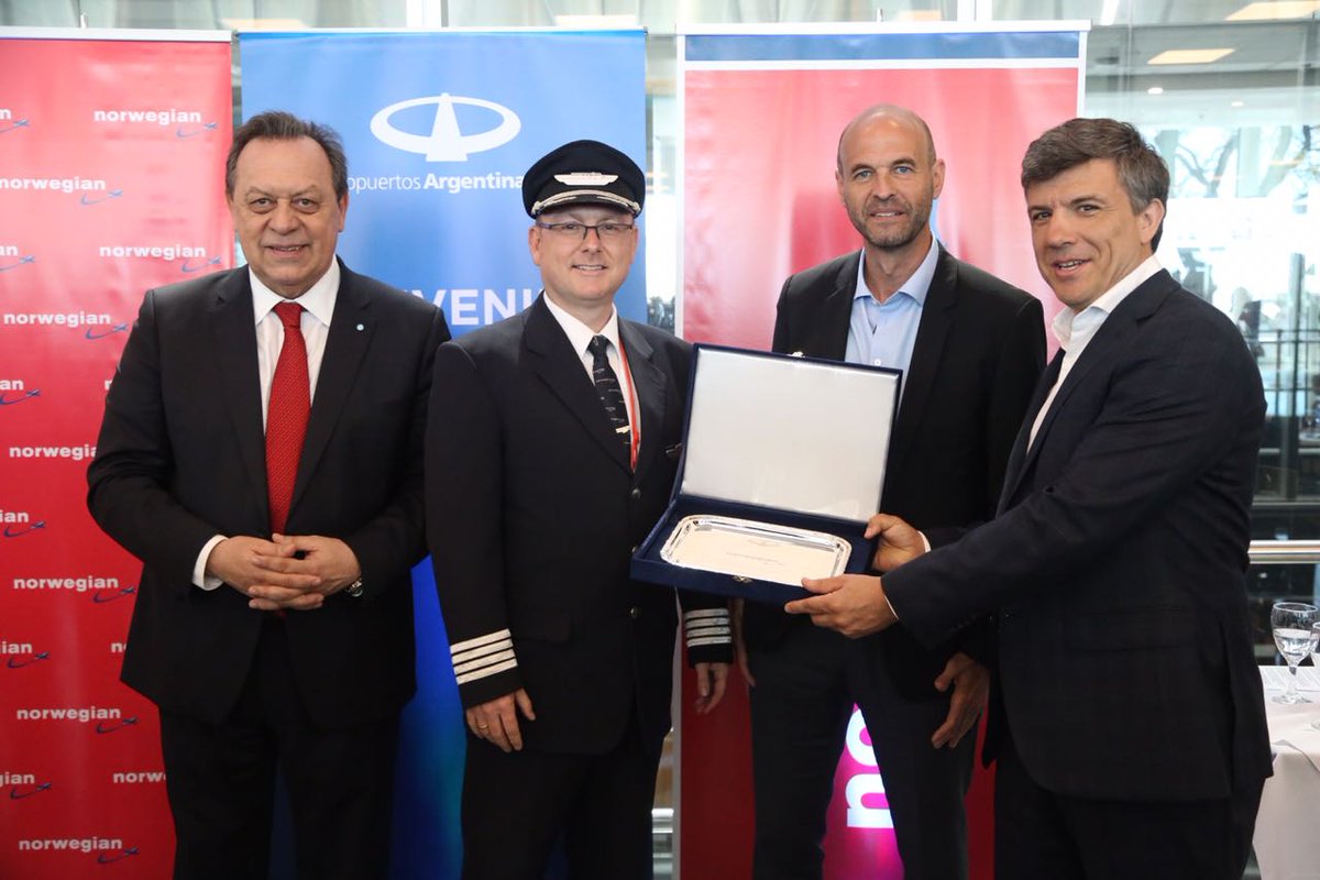 De regreso en Aeroparque, la bienvenida estuvo a cargo del Ministro de Transporte de la nación, Guillermo Dietrich, quien aseguró que en los últimos dos años ya se sumaron tres nuevas empresas al mercado aéreo: Avianca, Flybondi y ahora Norwegian Air Argentina. Destacó que Norwegian es una de las empresas que más crece en el mundo y que ganó durante seis años consecutivos el premio a la mejor low cost de Europa, ha revolucionado el mercado intercontinental de low cost y genera cientos de puestos de trabajo para argentinos.