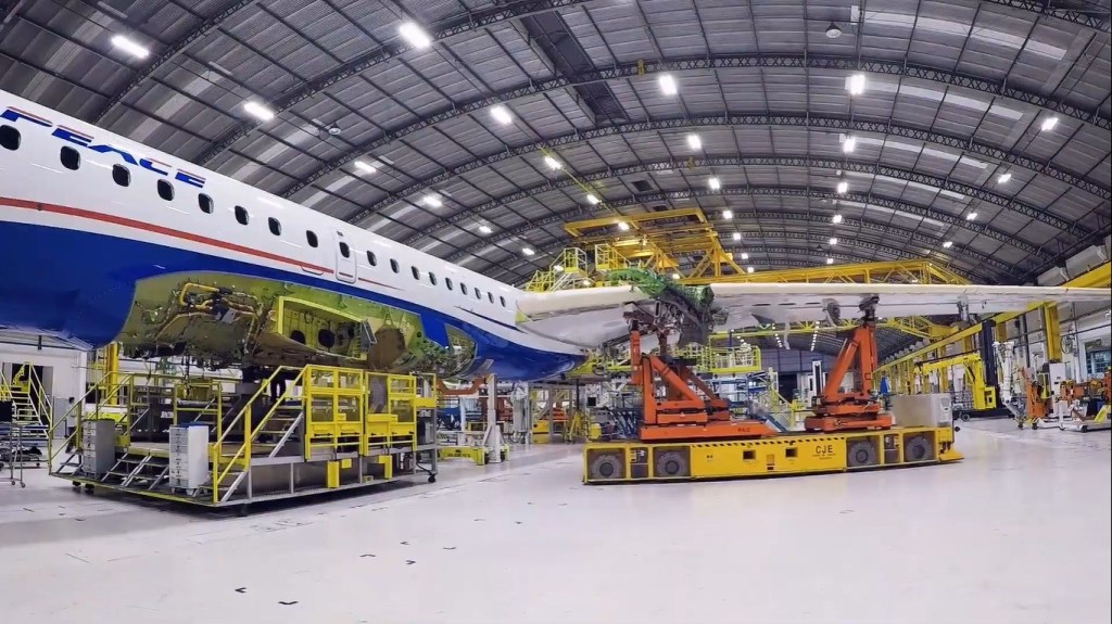 Montagem da Embraer E195-E2 Prime para a paz aérea