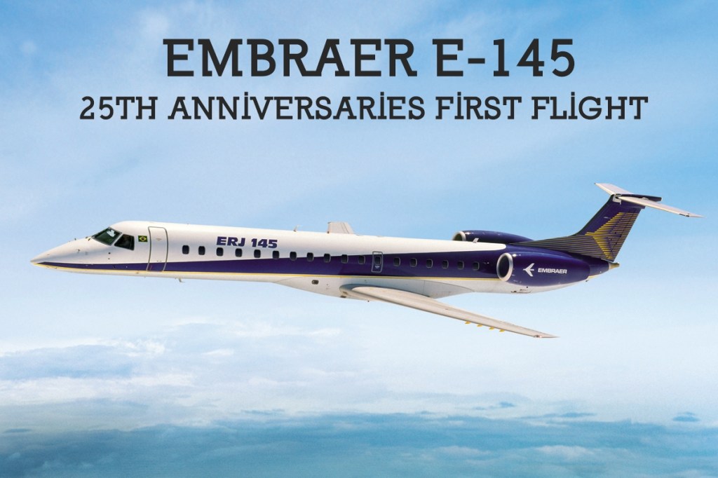 The Embraer Regional Jet (ERJ) family is a series of twin-engine regional aircraft produced by aerospace Embraer S.A. of the Republic of Brazil. The Brazilian company is celebrating the 25th anniversary of the first flight of the ERJ-145 (E145) prototype that carried out its maiden flight on August 11, 1995 in Sao José dos Campos, State of Rio de Janeiro, Brazil.