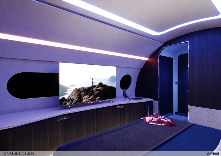 El programa de tres conceptos ZEROe incluye una motorización turbofan para transportar entre 120-200 pasajeros con un alcance de más de 2,000 millas náuticas, capaz de operar transcontinentalmente y propulsado por un motor de turbina de gas modificado que funciona con hidrógeno. El hidrógeno líquido se almacenará y distribuirá a través de tanques ubicados detrás del mamparo de presión trasero. Luego está un avión de 100 pasajeros que usa un motor turbohélice impulsado por combustión de hidrógeno en motores de turbina de gas modificados. Sería capaz de viajar más de 1.000 millas náuticas, por lo que sería una opción adecuada para viajes de corta distancia.