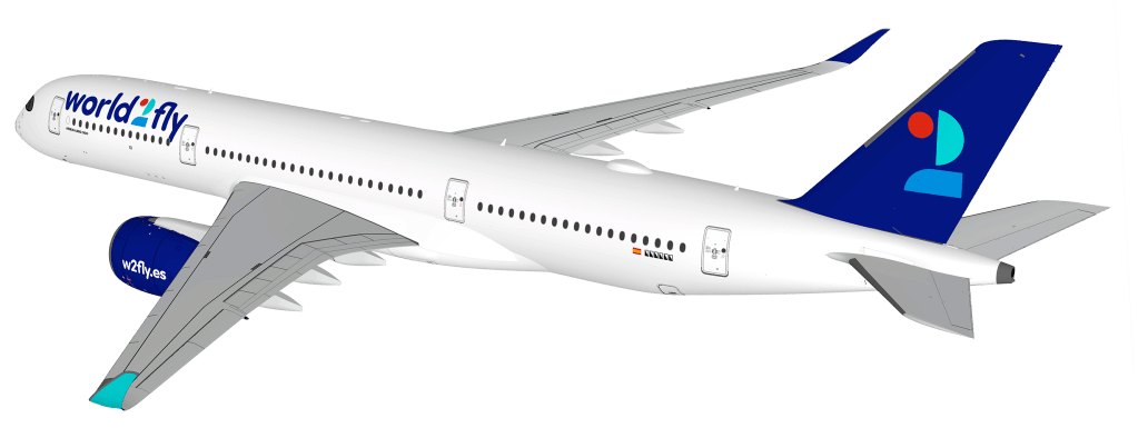 Tras la apertura de su página web y redes sociales, permitiendo obtener las primeras impresiones de la aerolínea vacacional, los directivos han comunicado que World2Fly operaría con un avión de última generación de la familia Airbus A350. “Totalmente nuevo, el Airbus A350 es un avión de nueva generación equipado con la última tecnología y más respetuoso con el medio ambiente. No sólo ha sido diseñado para reducir la contaminación, consumiendo un 25% menos de combustible y reduciendo las emisiones de CO2, sino que es de los aviones más silenciosos del mundo y permite reducir la sensación de jet-lag”, indicó el Ejecutivo Bruno Claeys.