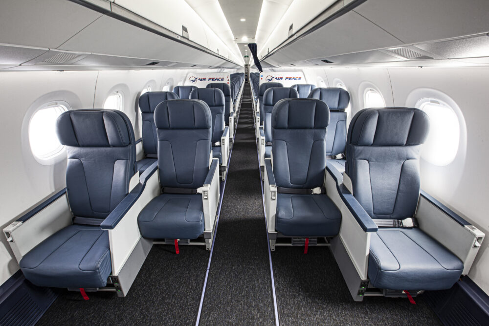 Air Peace operará su E195-E2 con una configuración de dos clases con 124 asientos para pasajeros. También es el primer cliente en instalar los asientos de pasajeros en un arreglo escalonado en la cabina. Esto da a los pasajeros más espacio para las piernas y la sensación de sentarse en un solo asiento. Gracias a los dos ventiladores de bajo consumo PW1900G de Pratt & Whitney, el jet regional bimotor alcanza un alcance de 2.655 millas náuticas (4.917 kilómetros) a la tarifa completa del pasajero.
