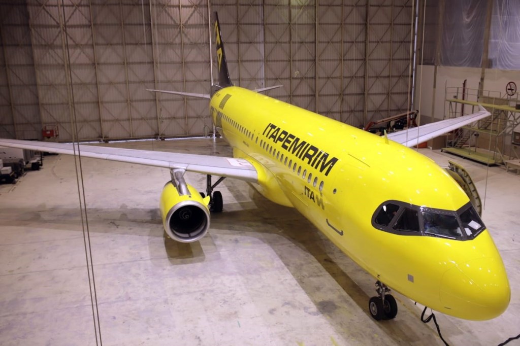 Itapemirim Transportes Aéreos made its public presentation this Thursday 03/11 on its official Facebook page of the first aircraft of the Airbus A320-200CEO fleet with the traditional colors that will be used in its operations. The reveal comes less than a month after the arrival of the first team. The President of the Group, Sidnei Piva, accompanied the moment considered historic and celebrated with all the employees and «Ita-lovers» for the public presentation of the first aircraft in the company’s hangar.