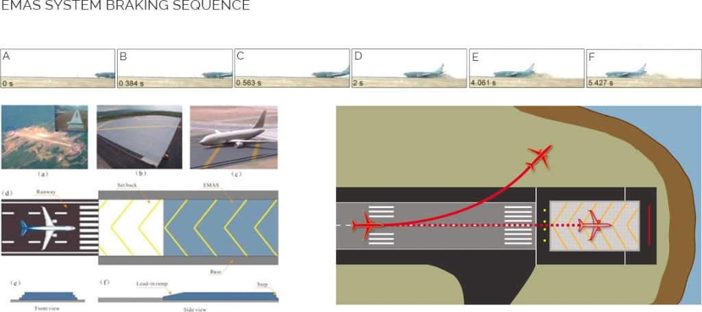 Chamado Modified Materials Arrest System (EMAS), um sistema de materiais projetados para a apreensão de aeronaves. A nova tecnologia alonga as pistas de aeroportos com restrição de espaço, como Congonhas. Ou seja, se o avião ultrapassar o limite da pista, ele cai no solo feito para se desintegrar, o que manteria a aeronave «presa» no concreto no final da pista. As duas estruturas serão sustentadas por vigas e pilares capazes de suportar aeronaves e veículos.