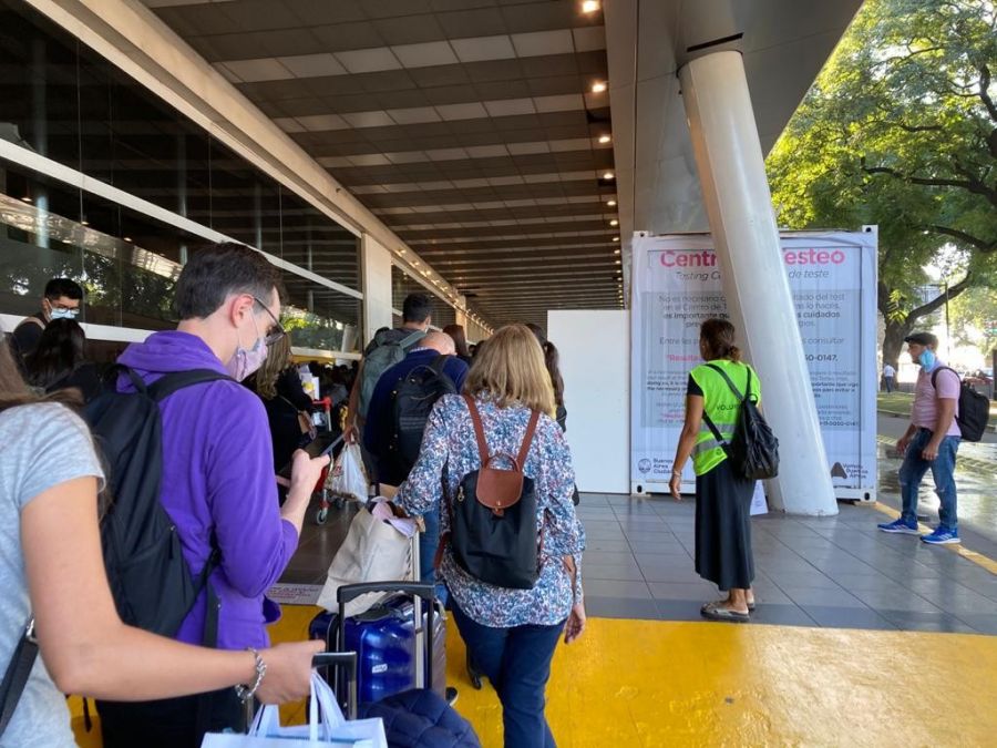 El sector de testeo está instalado en uno de los accesos de autos de la terminal aeroportuaria, distante 50 metros del área de arribos. Debido a las dimensiones del lugar, el volumen de pasajeros en tránsito que arriban desde todos puntos del país y por varias aerolíneas ha saturado el área. Sin embarco, los porteños responsables aceptan esperar para volver a sus casas con tal de tener la tranquilidad de un resultado negativo. El espacio y los boxes de toma de muestras son escasos en vista de la demanda, algo que el Gobierno porteño deberá revisar de manera urgente.