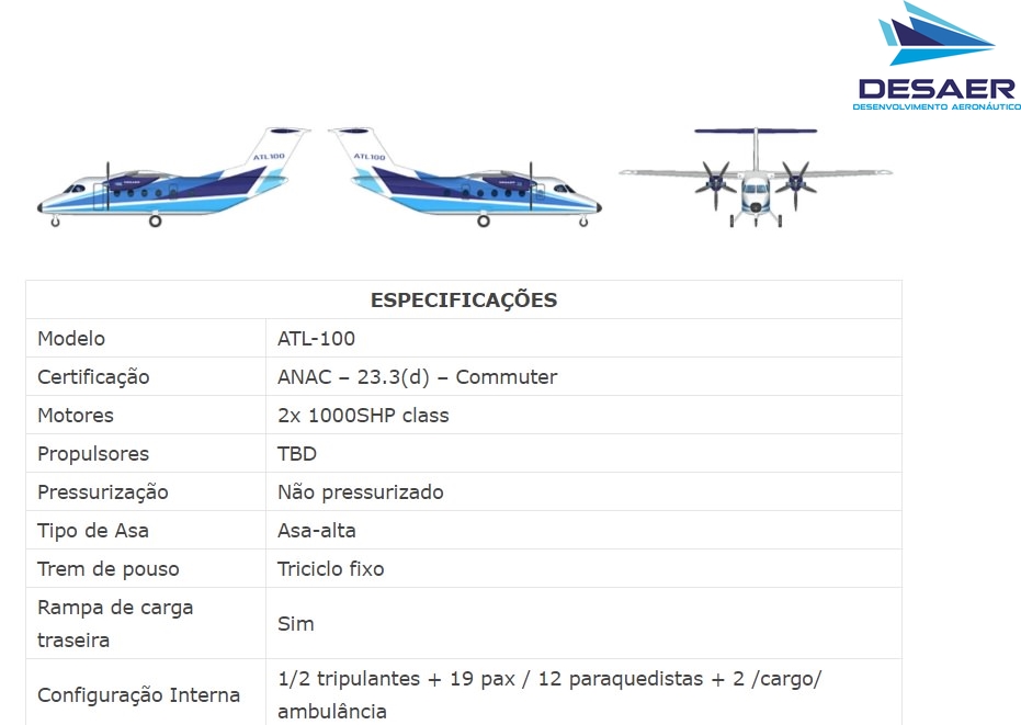La compañía brasileña Desaer (Desarrollo Aeronáutico) planea construir su fábrica en Araxá, en el Estado de Minas Gerais (MG) para producir el proyecto de avión bimotor ATL-100 (Avión de Transporte Ligero). Se espera que la construcción comience en la segunda mitad de 2021. La compañía fue fundada por el ingeniero Evandro Fernandes Fileno, quien dejó Embraer en 2016 para crear la compañía DESAER S.A. que continúa desarrollando la aeronave de tansporte liviano ATL-100. Actualmente, tiene varios socios entre ellos Embraer S.A. y The Boeing Company.