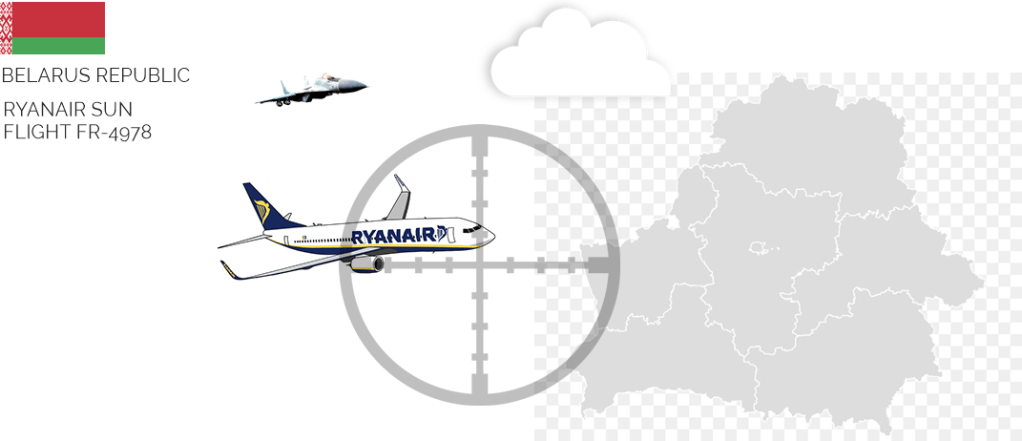 Una fuente de la oposición de Bielorrusia escribió en las redes sociales que el avión de pasajeros había sido abordado por un caza Mig-29 de Bielorrusia y esencialmente había sido forzado a descender. Los sitios web de seguimiento de vuelos que registraban el progreso del avión de Ryanair mostraban que giraba bruscamente justo antes del espacio aéreo y el aterrizaje de Lituania, hacia Minsk. Otros informes dijeron que la tripulación del vuelo de Ryanair había sido informada de una amenaza de bomba en el avión. El sitio web de la industria de viajes aéreos onemileatatime.com dijo que, aunque la tripulación de Ryanair había desestimado el informe de amenaza de bomba, había sido obligada a aterrizar en Minsk. Un portavoz del Aeropuerto de Vilna dijo que el Aeropuerto de Minsk les había informado de que el vuelo se había desviado a Bielorrusia debido a un conflicto no especificado entre la tripulación del avión y los pasajeros. El vuelo FR-4978 de Ryanair, según la misma fuente, que estaba programado para aterrizar en Vilna a las 13:00 hora local, habría sido autorizado para salir de Minsk y llegaría a la capital lituana alrededor de las 17:30 hora local.