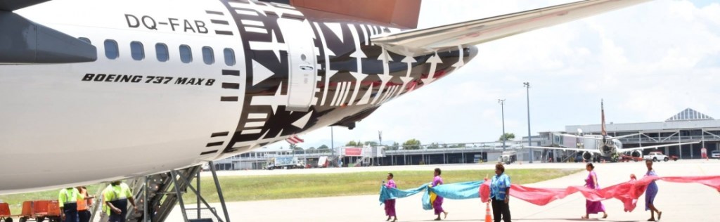 La flota total de Boeing 737-8 MAX poseen los registros DQ-FAB, DQ-FAD, DQ-FAE, DQ-FAH y DQ-FAF. Las cinco aeronaves están en arrendamiento de GECAS. La aerolínea estaba utilizando principalmente el tipo de aeronaves para conectar la Isla de Fiji con Australia y Nueva Zelanda y se había programado vuelos a otras islas cercanas como así también a Honolulu en Hawáii. Mientras tanto la compañía todavía no ha reanudado las operaciones con este tipo de aeronaves.![]()