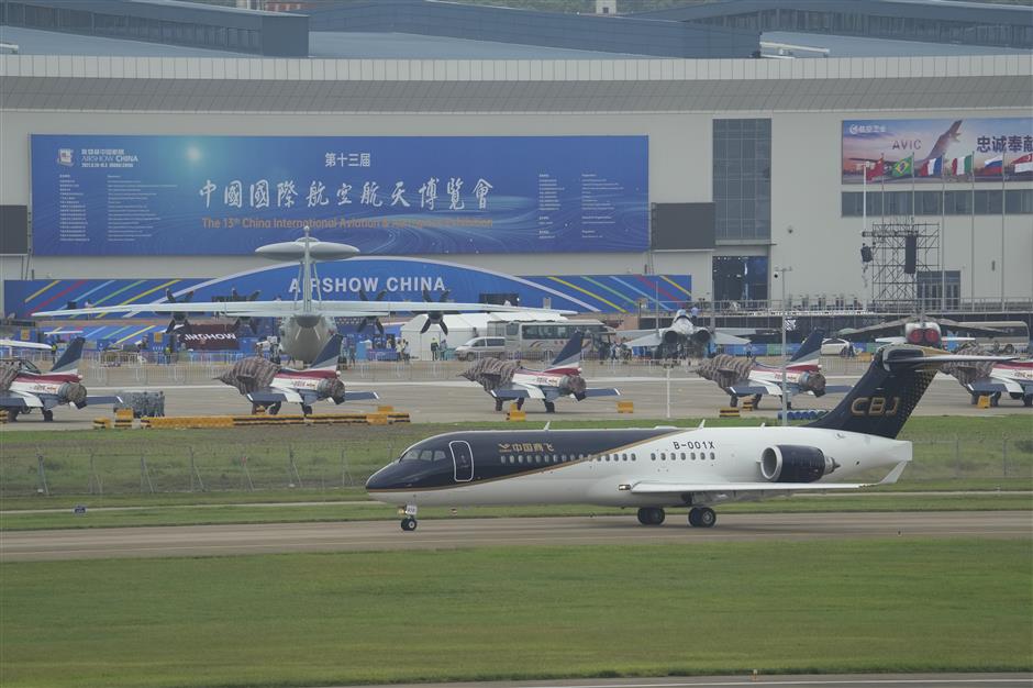 Durante el Airshow China, COMAC también mostró su avión de negocios CBJ, que es uno de una serie de productos de aviones ARJ21 dirigidos al mercado de alta gama. Con una cabina más espaciosa que los modelos rivales, el diseño de la aeronave puede acomodar de 12 a 29 pasajeros. Se puede configurar de manera flexible con áreas funcionales relativamente independientes de acuerdo con los requisitos individualizados de los clientes, dijo la compañía.
