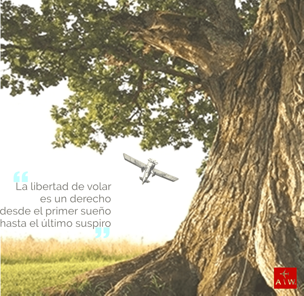 «La libertad de volar es un derecho desde el primer sueño hasta el último suspiro». «The freedom to fly is a right from the first dream to the last breath».
