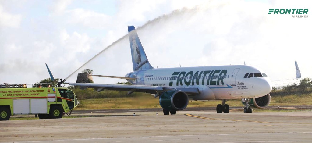 Frontier Airlines‘ maiden flight opened the Orlando/MCO—Antigua/ANU route at VC Bird International Airport, on the island of Antigua & Barbuda on Saturday afternoon 04/12, after almost two years of negotiations. The event was especially historic as his co-pilot Aron Simon and one of the flight attendants are natives of Antigua and Barbuda. Ninety-seven passengers arrived on the first flight to Antigua just two days ago, and subsequently Frontier Airlines will operate direct services to the country every Saturday.
