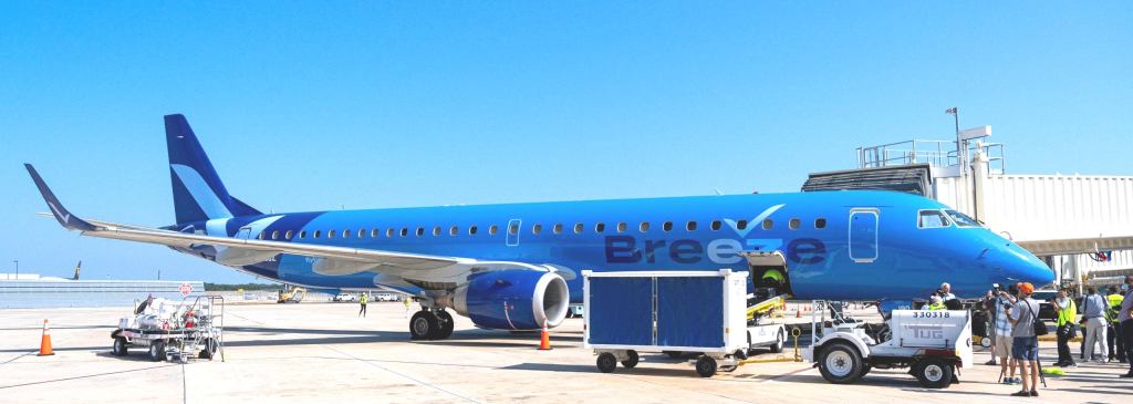 Breeze has ordered eighty (80) new Airbus A220-300 aircraft, with options for an additional forty (40), to be delivered one per month for six years. The airline will more than double its fleet this year, from thirteen Embraer 190 and 195 jets to thirty aircraft, including an additional thirteen Airbus A220s (13) and four Embraer E-jets (4). The company will incorporate the modern A220 aircraft on some of its new routes.