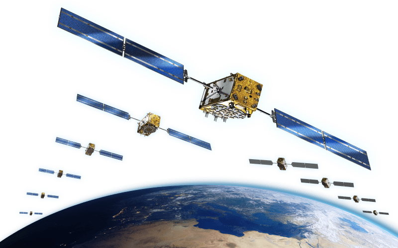 Weighing around 2.3 tons, each satellite is designed to function for around 15 years. Airbus’ state-of-the-art, all-electric Medium Earth Orbit (MEO) platform reuses flight-proven core components from our telecommunications and Earth observation programs, leveraging a unique combination of heritage and in-orbit experience. The scalable, flexible and modular navigation payload solution is also based on telecommunications elements for beamforming and signal generation.