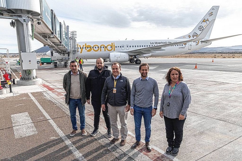 Flybondi’s Chief Commercial Officer, Federico Pastori, was received by the local authorities Germán Issa Pfister, Secretary of Economy of the Municipality of Comodoro Rivadavia and President of the Comodoro Tourism Entity, Eduardo Carrasco Undersecretary of Heritage Management and Tourism, Pablo Francavilla Undersecretary of Modernization and Transparency and Gabriela Zuñeda Manager of the Commodore Tourism Entity.