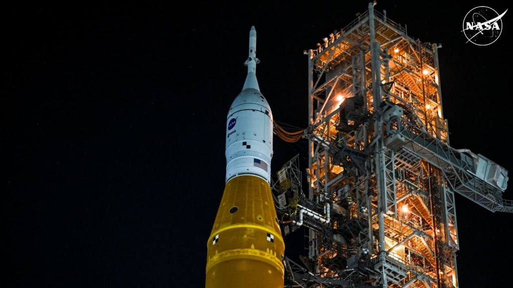 The first orders of business are to fill the water tank for the sound suppression system, prepare the liquid oxygen and liquid hydrogen systems, power up the Orion spacecraft, power up the interim cryogenic propulsion stage, power up the core stage, and prepare all four RS-25 engines, according to a launch timeline on NASA’s website. The Artemis I rocket is expected to launch from the Kennedy Space Center on Monday between 08:33 a.m. and 10:33 a.m. ET, assuming the weather is favorable. The stack, consisting of the Space Launch System (SLS) Rocket and the Orion spacecraft, stands 98 meters (322 feet) tall.