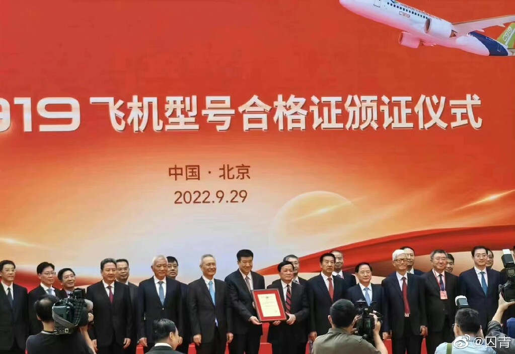 中國獲得中國商飛C919認證