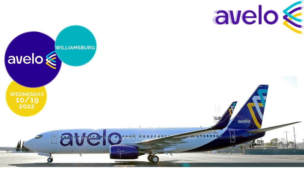 El Miércoles 19 de Octubre de 2022, el Aeropuerto de Williamsburg/PHF, en el Estado de Virginia (VA), celebró el primer vuelo inaugural de Avelo Airlines al aterrizar en su pista; con el lanzamiento del servicio sin escalas de la aerolínea hacia el Aeropuerto Internacional Orlando/MCO y al Aeropuerto Internacional Fort Lauderdale Hollywood/FLL en el Estado de Florida (FL). La aerolínea de presupuesto desarrollará dos frecuencias semanales (2Frq/S) Jueves y Domingo. El precio introductorio para los vuelos desde Williamsburg Airport/PHF a Orlando/MCO y Fort Lauderdale/FLL comienza en US$ 49, solo ida.