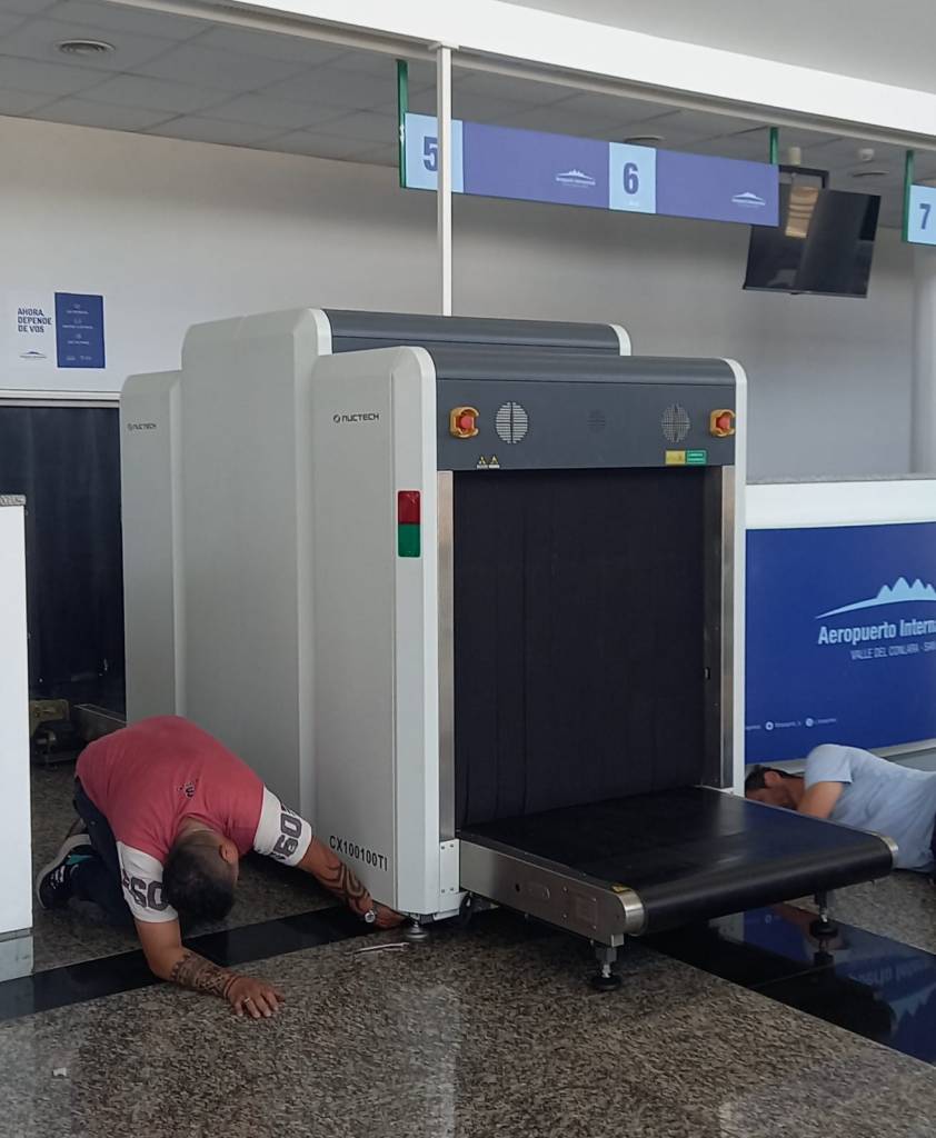Claudio Balzola, head of Aeronautical Infrastructure at the Valle del Conlara Airport, explained that the works are carried out in different places of the establishment, such as the reconditioning of the pre-boarding area and painting tasks in the movement areas, in the horizontal signage. They carry out maintenance work on the infrastructure, on the systems and a new scanner machine was installed for baggage control. A new RX 100×100 scanner machine was installed for baggage control. It features high image quality with advanced material identification capability, low X-ray leakage, new ergonomic user interface, multiple image zoom modes, convenient image management functions, suspicious imaging projection (TIP), automatic detection of explosives and drugs, modularized design and self-diagnosis and windows XPE. In addition, personnel from the systems area of Aerolíneas Argentinas are working, who carry out the installations of the entire systems infrastructure such as the operation of counters, impasse edge baggage printers, traffic management and the boarding gate, among others.