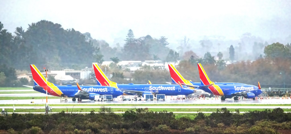 AERONAVES SOUTHWEST ESTACIONADOS EN AEROPUERTO SANTA BÁRBARA DURANTE EVENTO CANCELACIÓN MASIVA