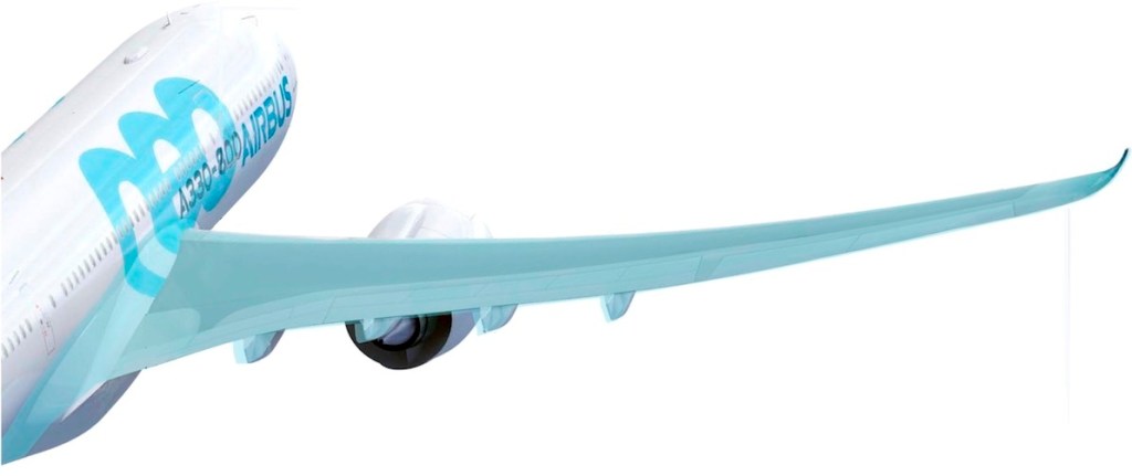 Las alas y los motores mejorados del Airbus A330neo son más eficientes. Además, el A330neo tiene una ventaja sobre varios aviones de generaciones anteriores con sus alas mixtas y motores mejorados. Cuenta con alas de gran envergadura que miden 210 pies (64 metros), lo que lo hace 12 pies más largo que las de un A330ceo. Las alas combinadas más grandes ayudan en la aerodinámica, lo que contribuye a una mayor eficiencia.