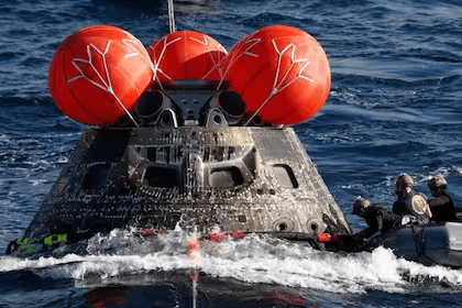 La cápsula con los cuatro astronautas de la misión, que orbitó la Luna en una histórica misión, amerizó el Viernes 10/04 cerca de la costa de San Diego (California) con la ayuda de paracaídas para reducir la velocidad de una caída libre de unos 14 minutos de duración tras entrar en la atmósfera terrestre.