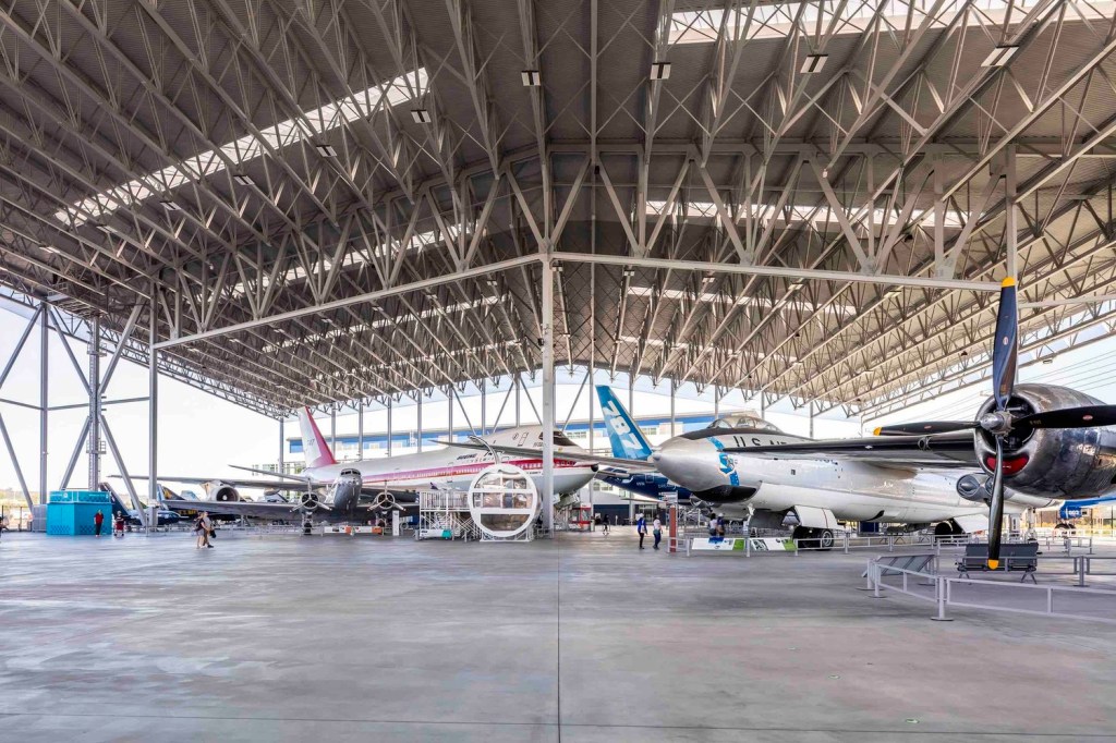 The Museum of Flight Aviation Pavilion is a 135,000-square-foot ceiling supported by steel columns and orthodontic frames with a twelve-inch concrete paving slab. It houses twenty aircraft for increased protection from the elements and customer access. Aircraft on display include the iconic Boeing 747 and 787 prototypes, Air Force One, Concorde, and other historic military and commercial aircraft.