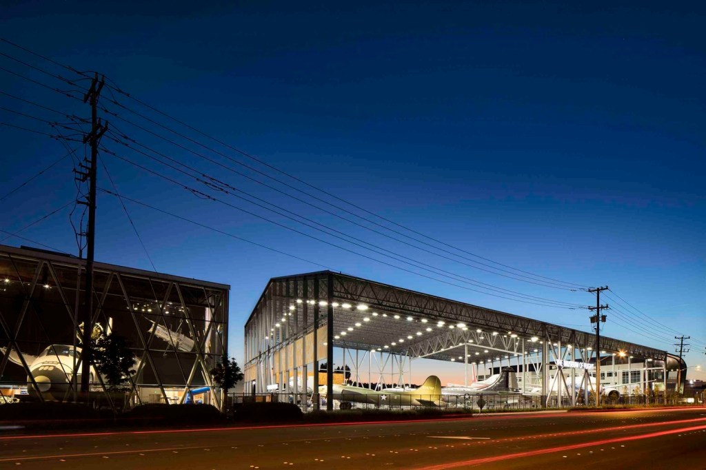 El Pabellón de Aviación del Museo del Vuelo es un techo de 135.000 pies cuadrados apoyado por columnas de acero y marcos de ortodoncia con una losa de pavimentación de hormigón de doce pulgadas. Alberga veinte aviones para una protección aumentada de los elementos y el acceso del cliente. Los aviones exhibidos incluyen los icónicos prototipos de Boeing 747 y 787, el Air Force One, el Concorde y otros aviones militares y comerciales históricos.