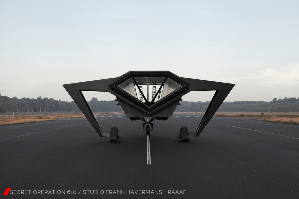 El Operación Secreta 610 es una solución móvil radical para el desafío de regeneración de transformar el búnker de aviones Shelter 610 en la antigua base aérea estadounidense de la OTAN Soesterberg de un hangar de aviones de combate F15 en un desafiante espacio de trabajo experimental para equipos más pequeños. El robusto objeto negro que hace referencia a las imágenes místicas militares de la Guerra Fría contiene un interior de trabajo funcional «básico» para un máximo de 10 personas.