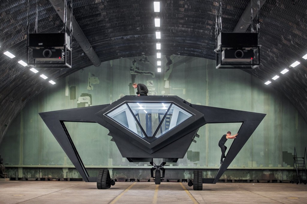 Secret Operation 610 is a radical mobile solution to the regeneration challenge of transforming the Shelter 610 aircraft bunker into the former US NATO Soesterberg airbase from an F15 fighter aircraft hangar into a challenging experimental workspace for more teams. little ones. The sturdy black object that references Cold War military mystical imagery contains a «basic» functional working interior for up to 10 people.